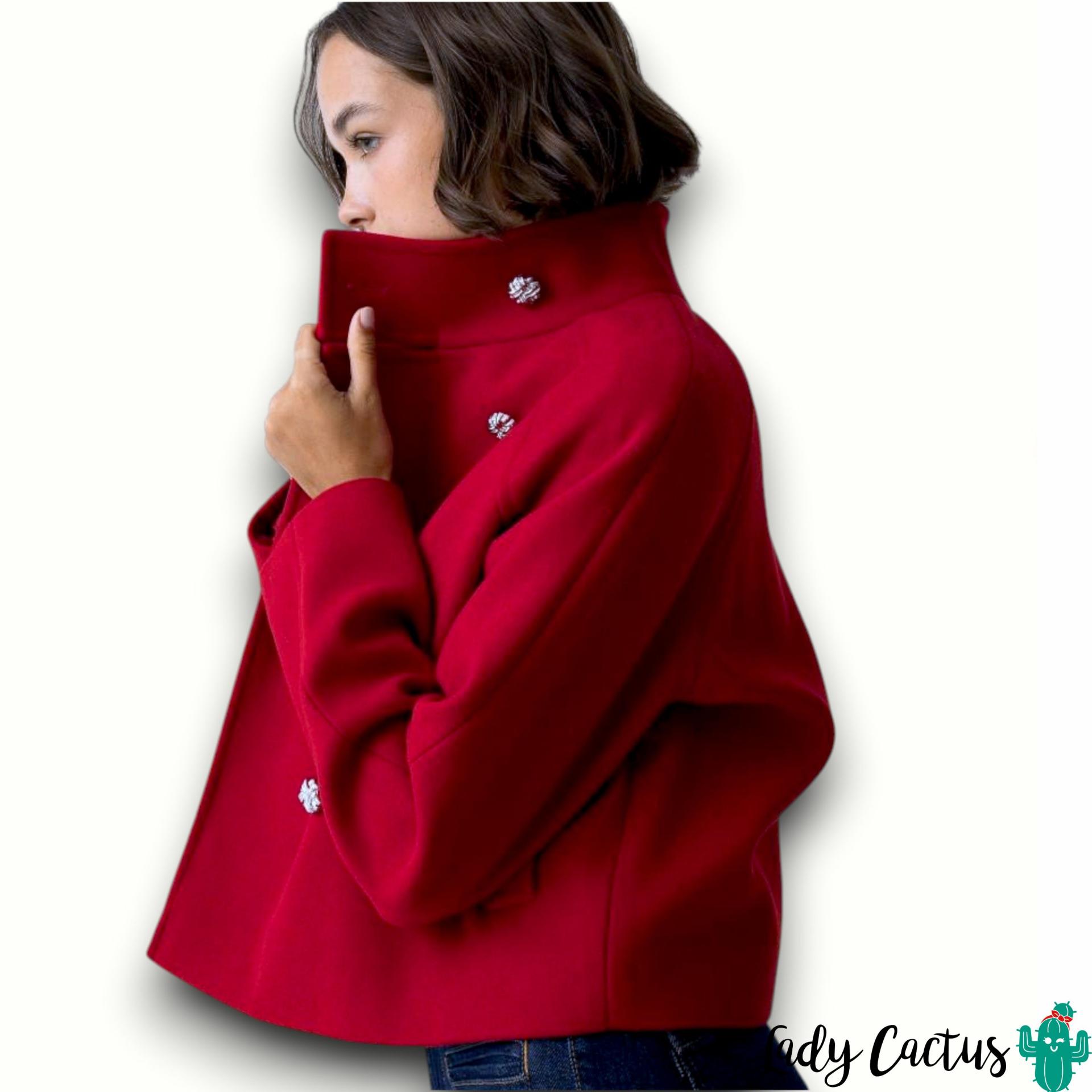 Chaqueta roja Kiltone de Tiffosi: corte corto relaxed fit con doble cruce y botones metálicos, cuello alto versátil para un estilo portugués sofisticado y práctico.