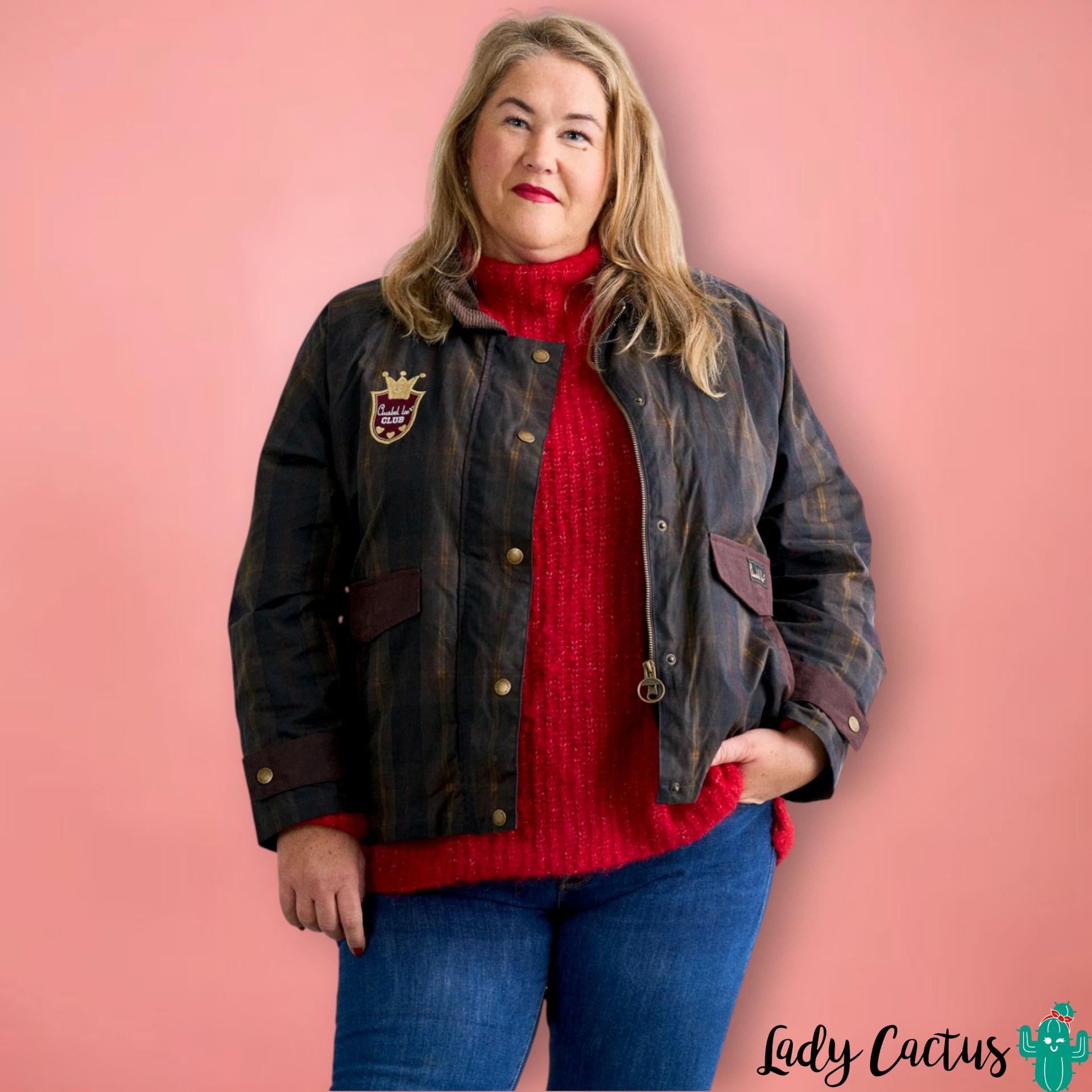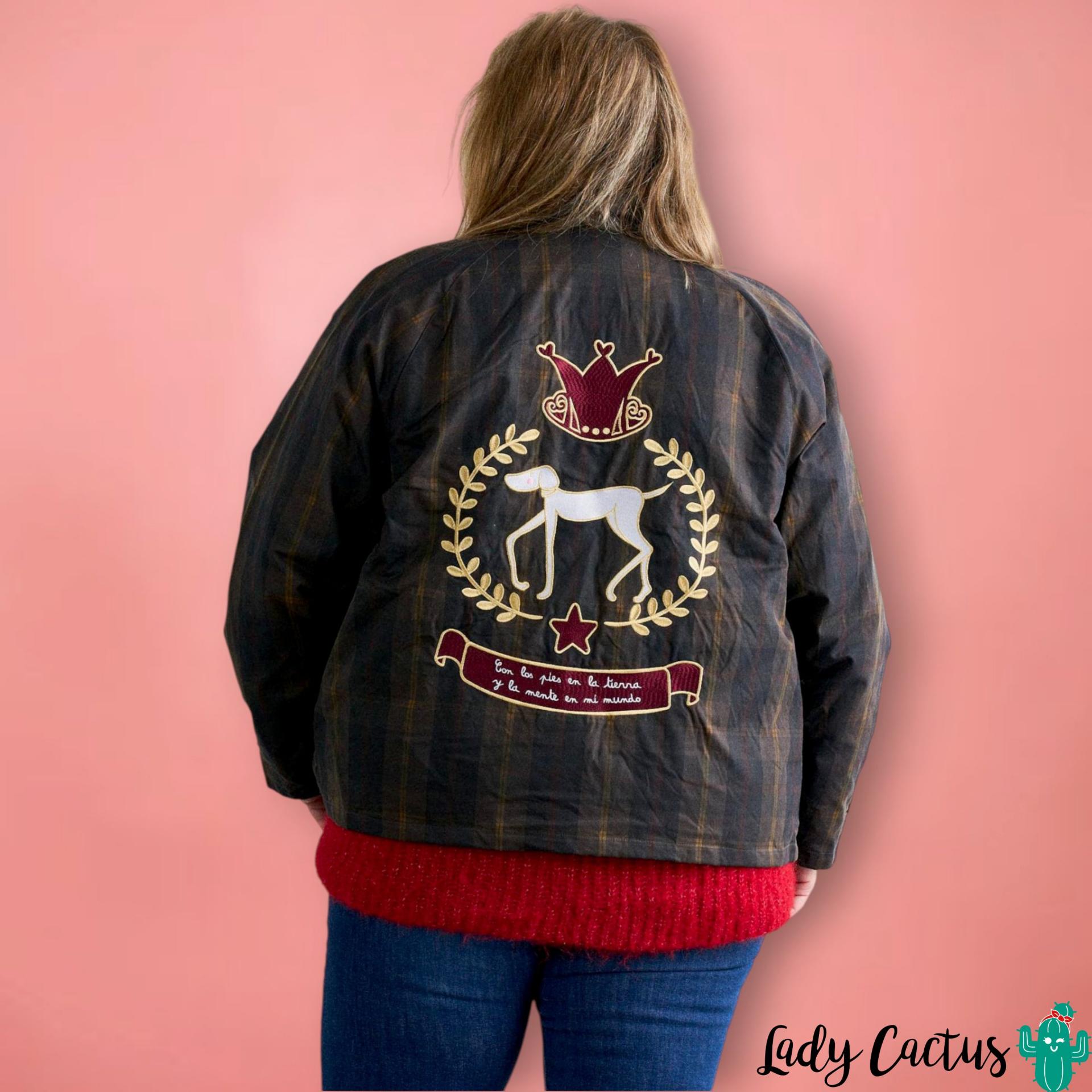 Chaqueta Glasgow de Anabel Lee: tartán encerado algodón repelente al agua con borreguito desmontable, oversize poética bordada para un estilo español emocional y versátil.
