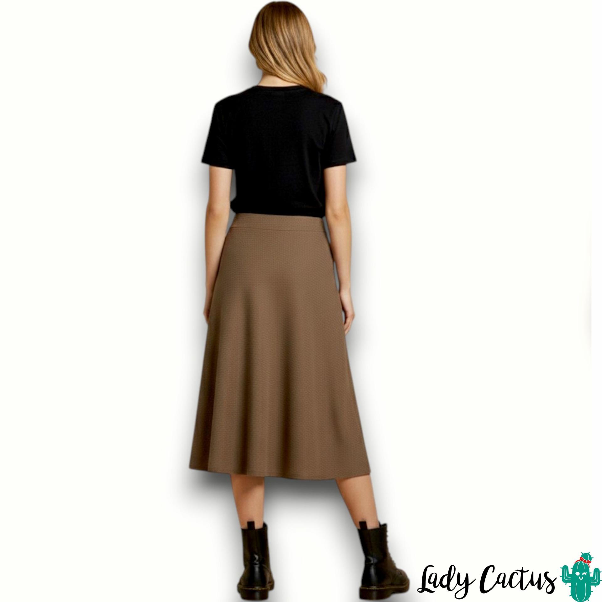 Con un favorecedor diseño midi, esta falda en un sofisticado color 182 Portabella se adapta a la perfección a tu silueta. Su tejido de punto canalé le da una textura única y un movimiento sutil. Es el compañero perfecto del cárdigan a juego, creando un conjunto coordinado que es sinónimo de elegancia y estilo. Su corte fluido y su cintura elástica la hacen increíblemente cómoda y fácil de llevar en cualquier ocasión.