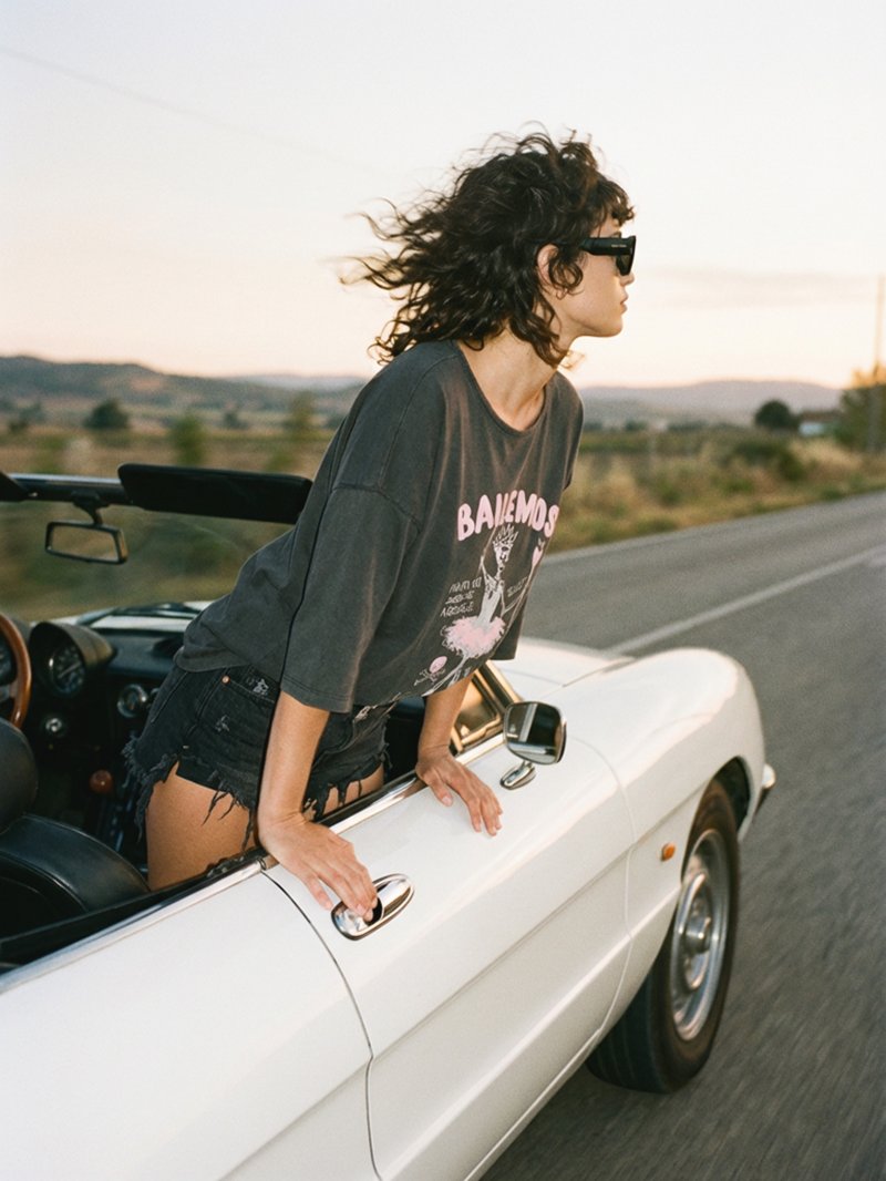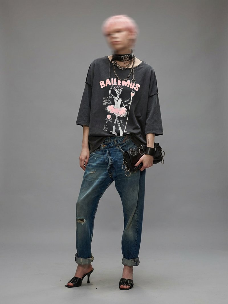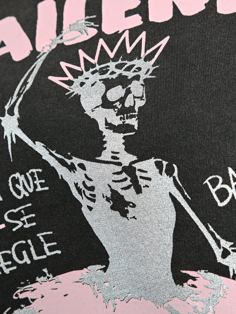 Jersey fino de algodón premium con ilustración "Bailemos" en rosa y foil plata