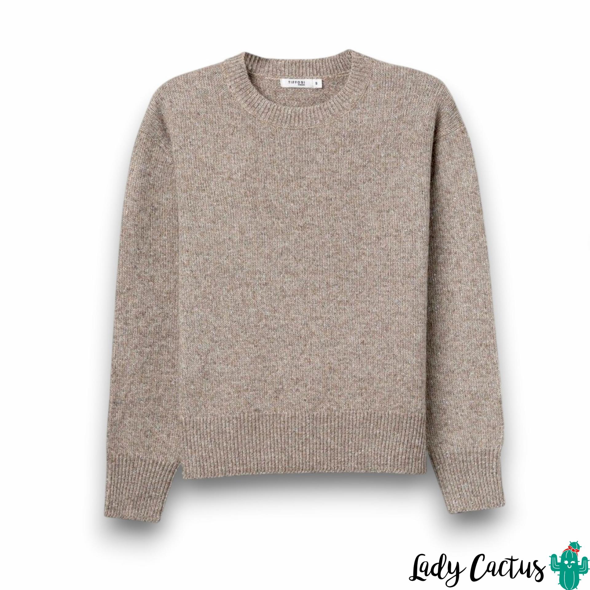 Confeccionado con 83% poliéster, 10% fibra metálica y 7% lana, este jersey de Tiffosi combina calidez con un diseño moderno. El color beige es un básico atemporal que podrás combinar fácilmente con cualquier prenda de tu armario, desde unos jeans hasta faldas de diferentes estilos. ¡Un jersey que te mantendrá abrigada con un toque de brillo!