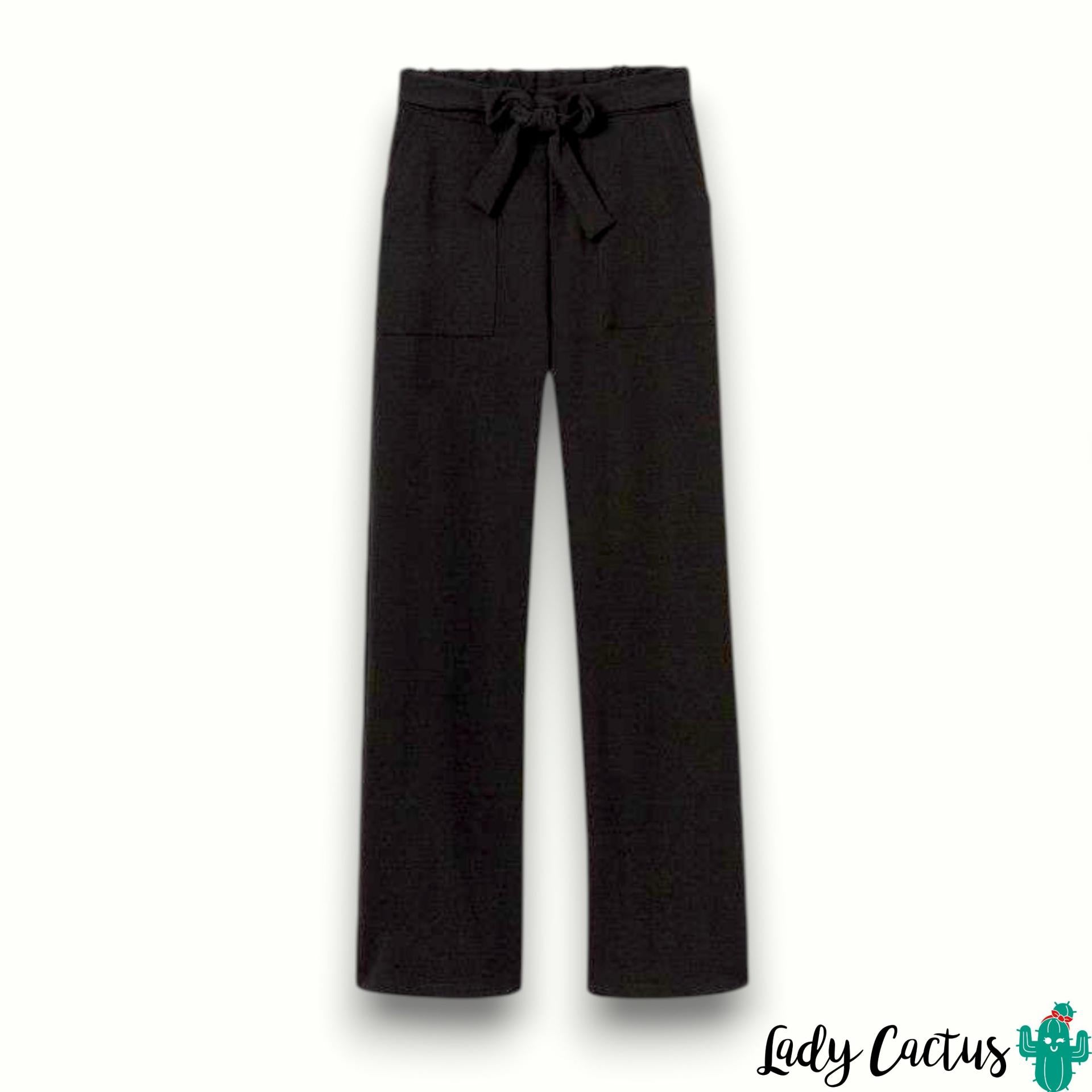 Con un favorecedor diseño wide leg, estos pantalones de color negro ofrecen un corte fluido que se adapta a cualquier silueta. Su cintura alta elástica proporciona un ajuste cómodo y seguro, mientras que la lazada frontal añade un detalle elegante que permite personalizar el fit. Además, cuentan con dos bolsillos prácticos para llevar tus esenciales.