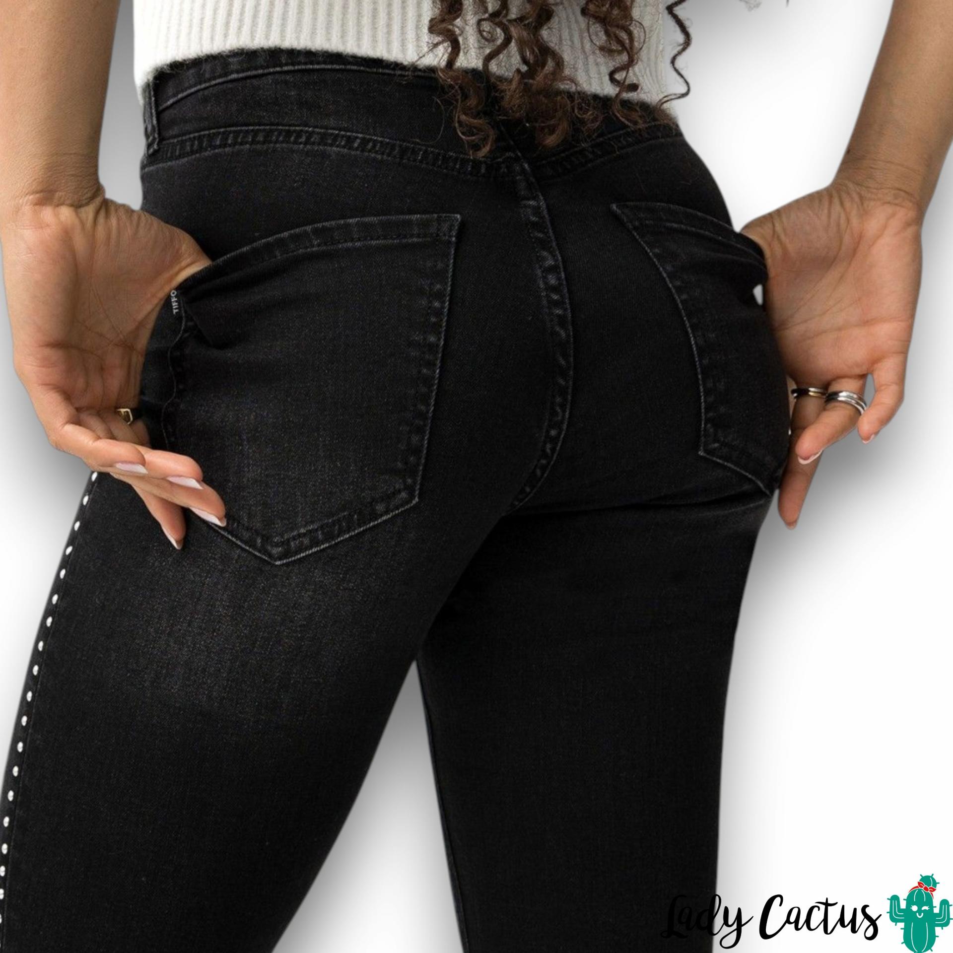 Pantalones vaqueros Megan negros cropped flare con tachuelas Tiffosi