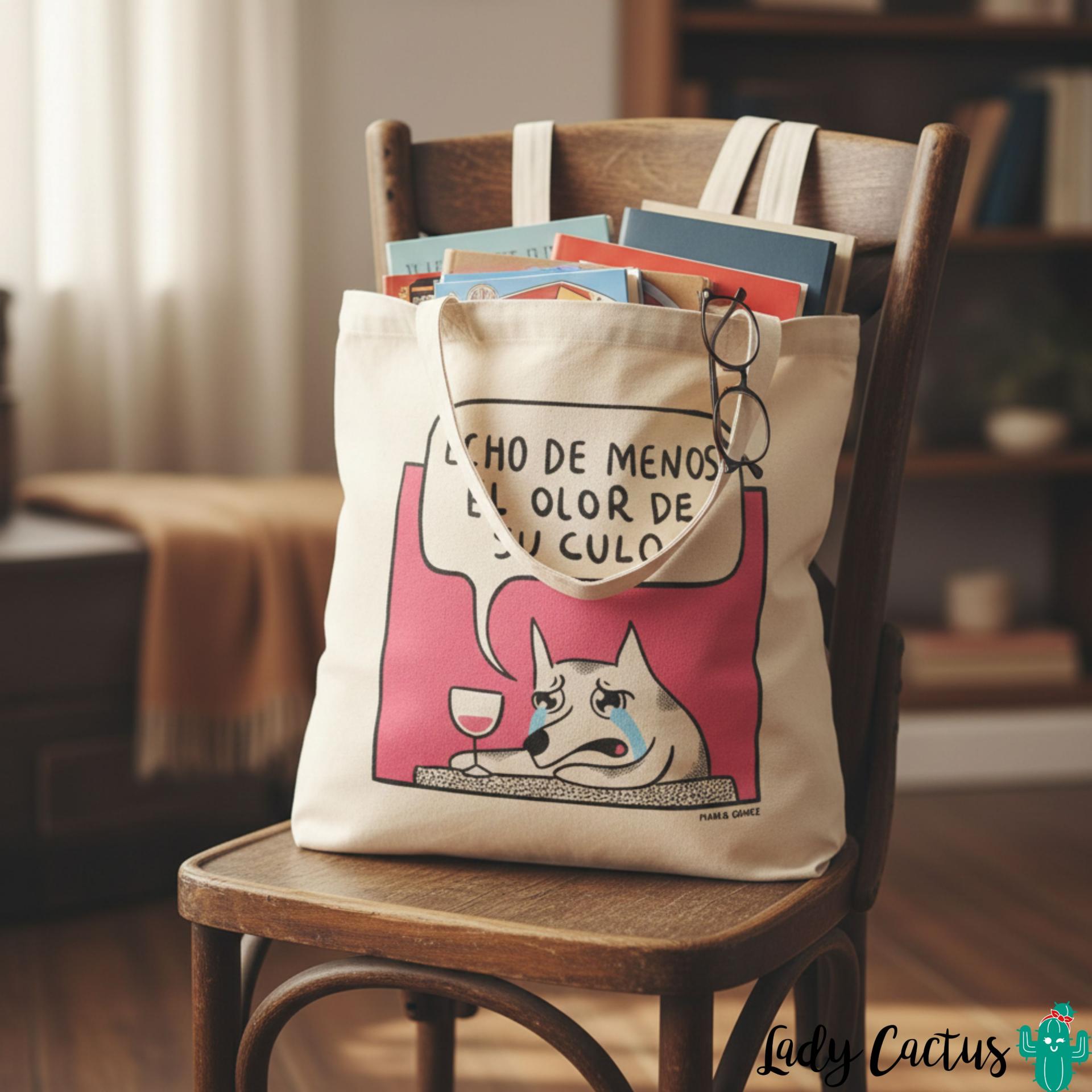 En el susurro nostálgico de las tote bags María Gómez en Lady Cactus, la tote bag Echo de Menos se despliega como un guiño absurdo que transforma la melancolía en risa liberadora, con su tela 100% algodón certificado de 140 gr que abraza los hombros con la suavidad de un recuerdo travieso, en blanco puro que deja brillar el print frontal serigrafiado a dos tintas: "Echo de menos el olor de su culo". Cada bolso, artesanal y único, captura esa ironía cruda que María Gómez infunde en sus ilustraciones –feminista, directa y sin pelos en la lengua–, convirtiendo un accesorio práctico en declaración de humor sin filtros. Mide 35 cm de ancho por 39 cm de largo, ideal para cargar libros, sueños o el peso ligero de un día con nostalgia juguetona, con asas resistentes que acompañan paseos urbanos sin quejarse. Hecha para mujeres que ríen de lo absurdo, esta tote bag invita a una moda sostenible que respira autenticidad, lavable a máquina con ternura para preservar su esencia. Combínala con pantalones cargo en tonos neutros para un look callejero cargado de ironía cotidiana, o con faldas fluidas claras para un contraste femenino que deje fluir su mensaje provocador. En Lady Cactus, esta tote no lleva cosas; lleva picardía –esa que dice "la vida es demasiado corta para no reírse". Perfecta para auras que celebran lo irreverente, atrayendo sonrisas en mercados, cafés o escapadas improvisadas.