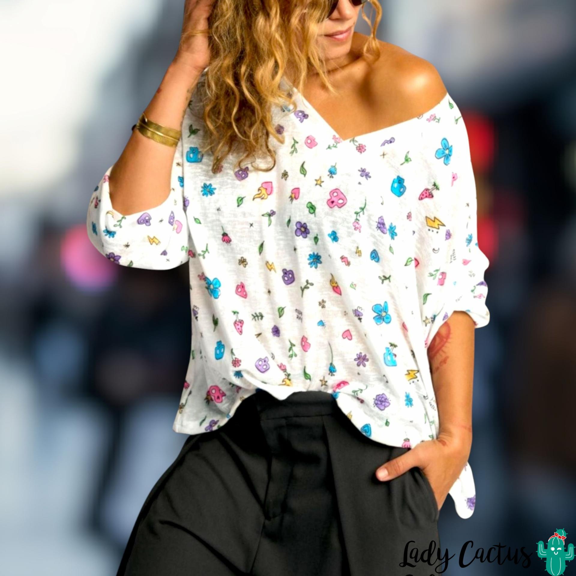Ideal para looks casuales con vaqueros, shorts o faldas, la Dibujitos es esa camiseta que no pasa desapercibida.