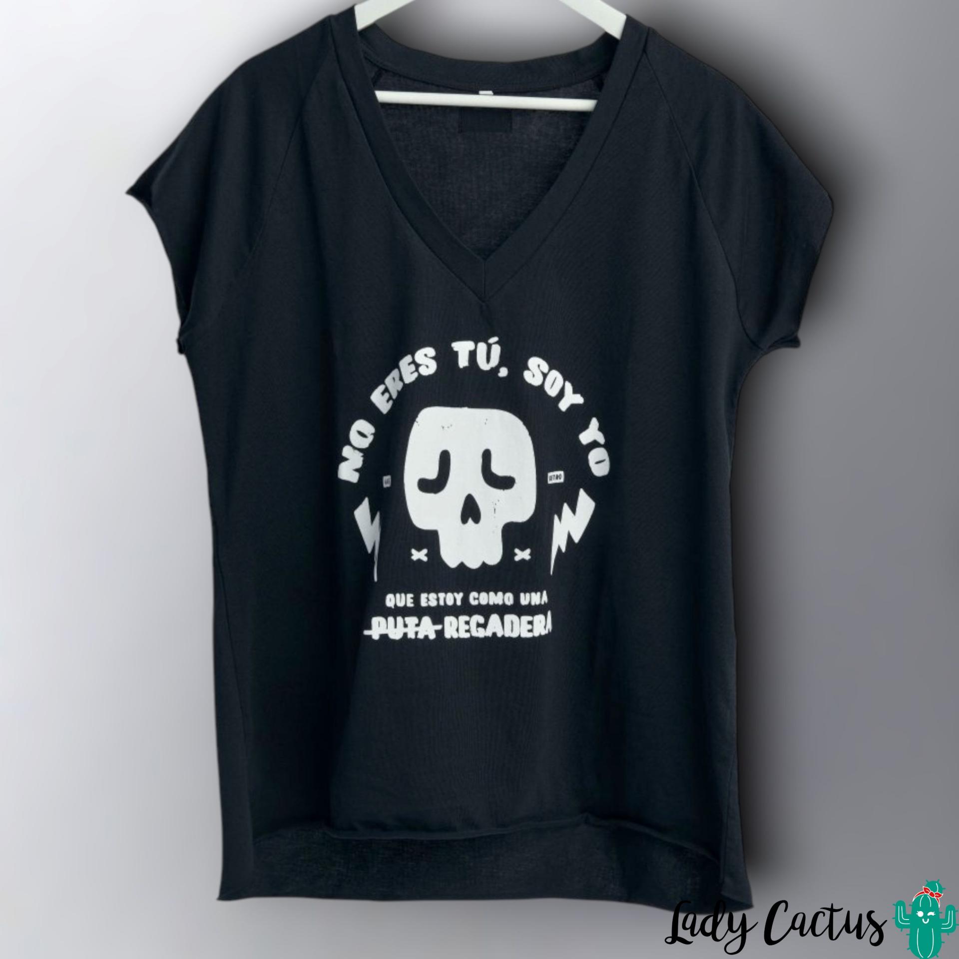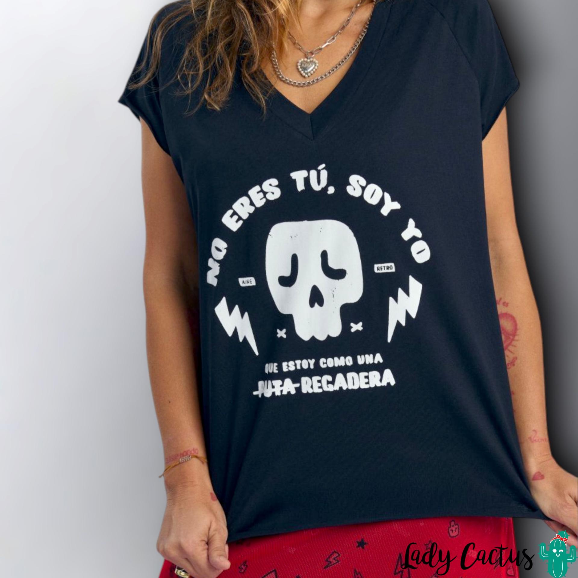 La Camiseta Negra "Regadera" de Aire Retro es una prenda básica con un toque divertido y único. Su diseño amplio de cuello pico, 100% algodón, la convierte en una camiseta cómoda y fácil de combinar. Con frases originales como “No eres tú, soy yo, que estoy como una regadera”, se convierte en un must-have de moda urbana. Diseñada en España y fabricada en Portugal.