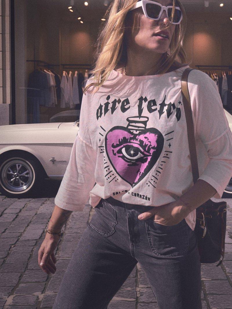Camiseta " Salvaje de corazón" rosa de Aire Retro