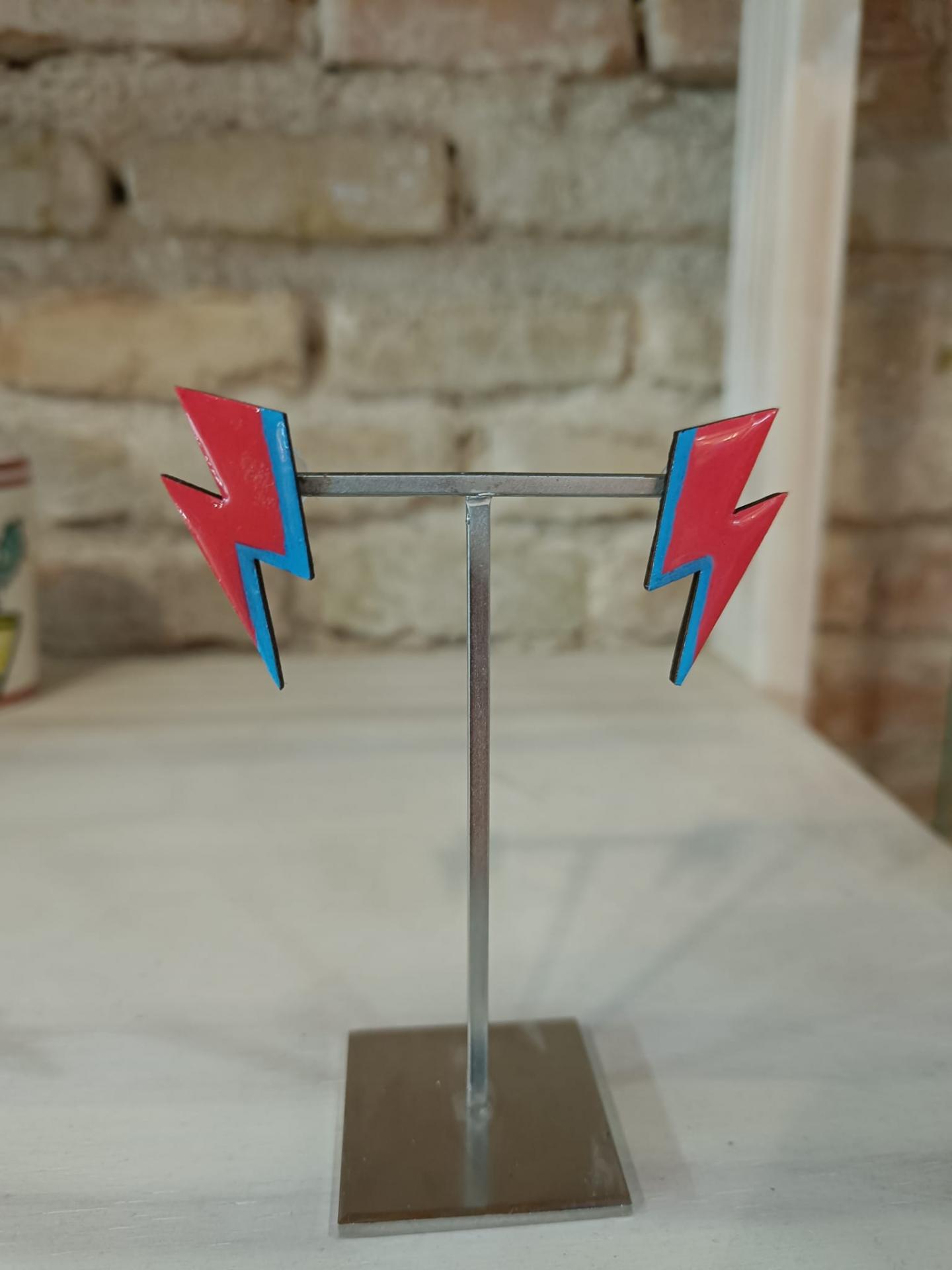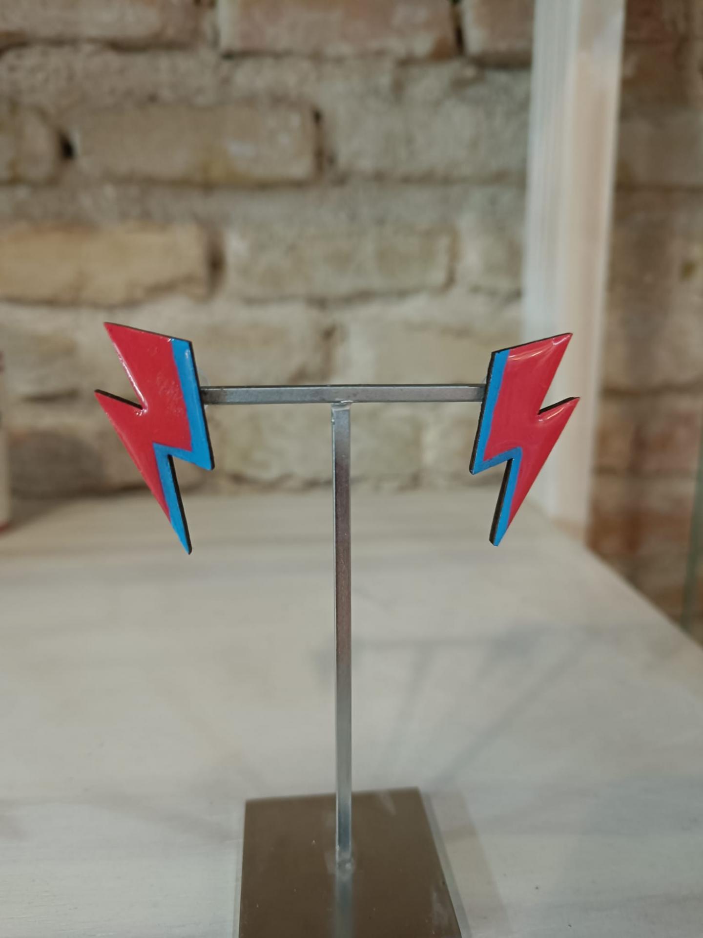 Rayos hechos a mano en madera, con esmaltado de resina. Miden aproximadamente 3 cm.