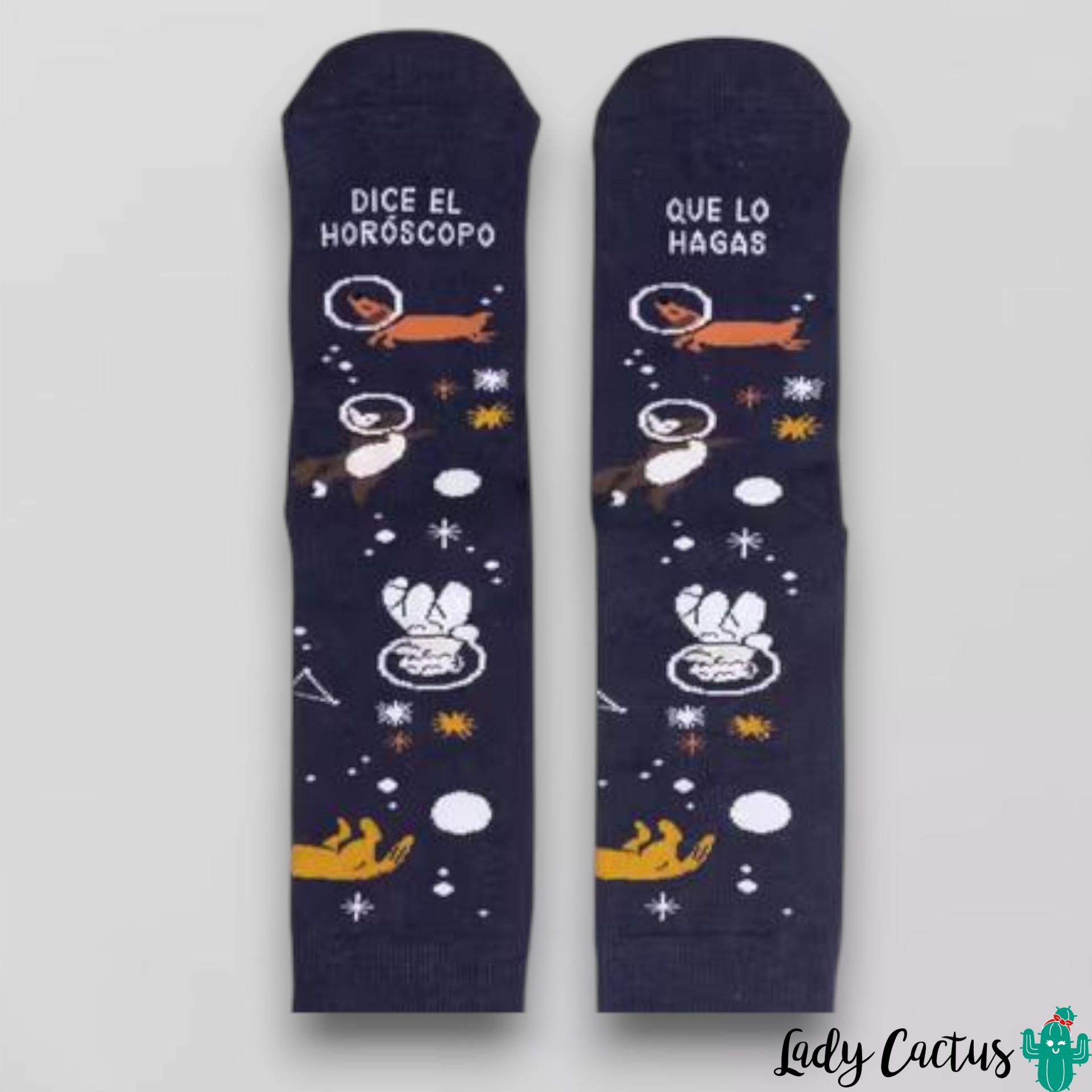 Calcetines Dice Horóscopo Lo Hagas de UO en Lady Cactus: algodón cómodo con frase astral divertida, versátiles originales para un estilo urbano español juguetón y cósmico.