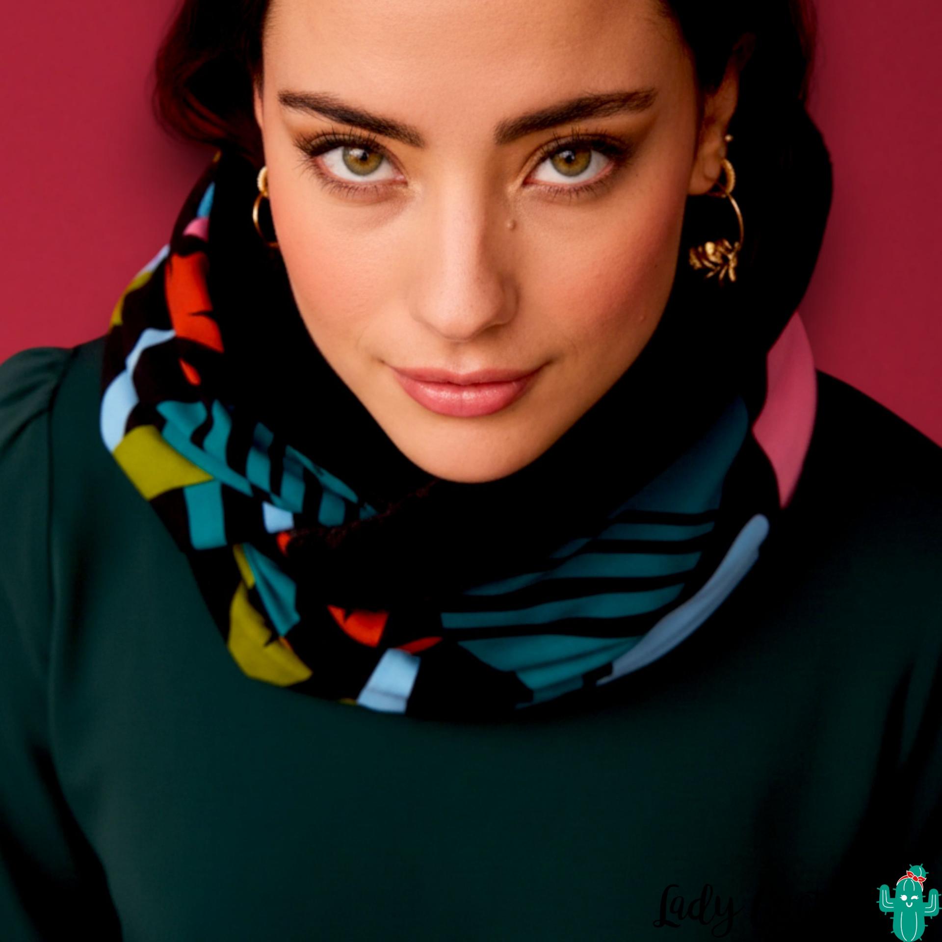 Cuello multicolor de Smile: edición limitada en poliéster con tejido y terciopelo reversible, calentito y juguetón para un estilo español colorido y moderno.