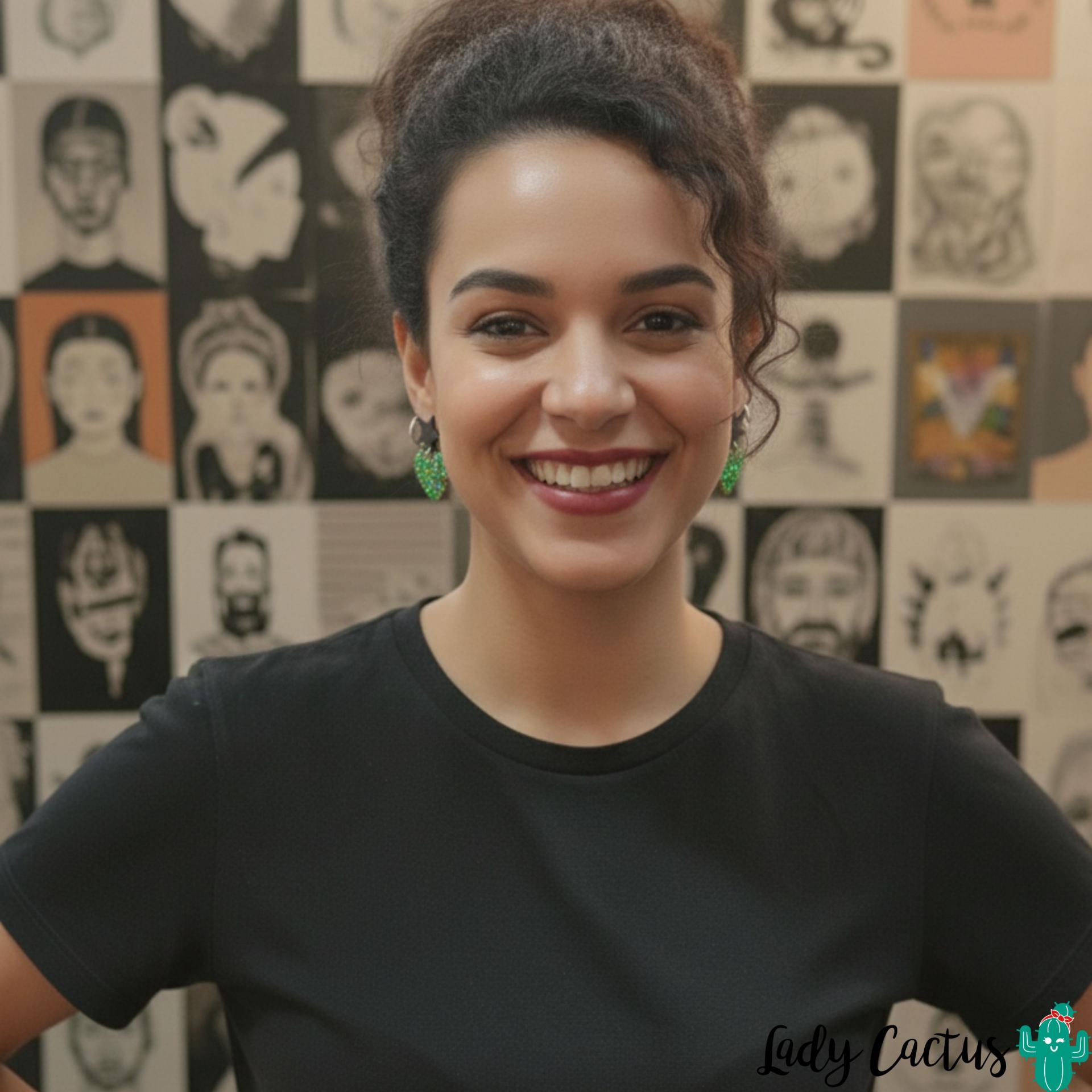 En el susurro esmeralda de la joyería Lady Cactus hecha a mano en Sevilla, los pendientes corazón brillo verde laten como besos de bosque que rozan la oreja con la dulzura de un jardín secreto, con la resina epoxi verde brillante cargada de glitter que sella un diseño mini que evoca tardes de esperanza andaluza y confidencias al sol. Cada par, artesanal y único, captura esa explosión de cariño que transforma un día de rutina en danza de emociones, con el tacto ligero que roza sin peso y la resina que fija chispas que no se apagan bajo la brisa sevillana. Hechos con mucho amor por nuestra artesana sevillana María del Mar, estos pendientes son ideales para cualquier ocasión, con cierre botón en forma de estrella negra y tuerca de acero inoxidable que pesa menos que un suspiro, perfectos para colgarse en mañanas de café con sol o como remate en noches donde la ciudad invita a girar con luz propia. Visualiza su corazón verde revoloteando sobre una camiseta básica para un look diurno equilibrado y radiante, o cayendo sobre un vestido vaporoso en tonos crema para un contraste femenino que deje danzar su fuego sutil. En un mar de joyas apagadas, estos pendientes no solo adornan las orejas, sino que despiertan el amanecer interior, atrayendo miradas que celebran la artesanía sevillana y la conexión con lo efervescente, hechos con pasión en cada curva.
